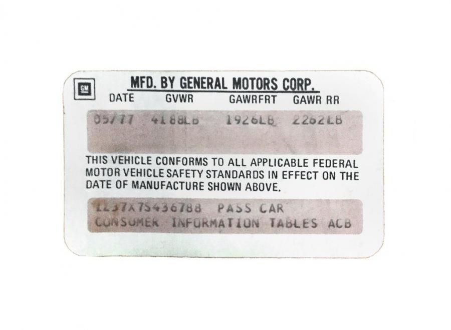 The only GM licensed vendor authorized to reproduce all these important VIN-related decals for GM, ECS Automotive Concepts. They have the special equipment in house to exactlymatch the original font style GM used to imprint the door jamb VIN Data Decals, on the correct white tamper proof paper.