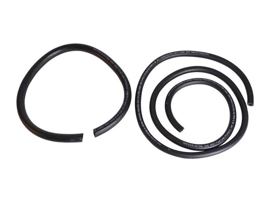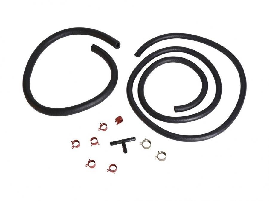 1975-1977 Corvette gas tank sending unit to metal fuel lines rubber flex hoses kit. Includes fuel line hose, vapor return line hose with 8-spring clamps and vapor tee fiting