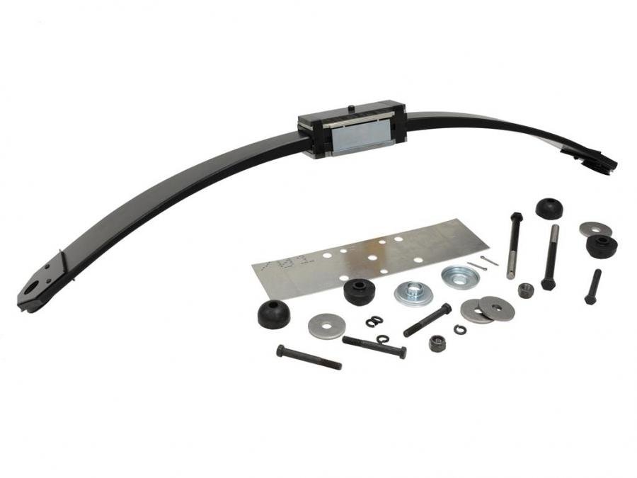 Eliminate your Corvette's choppy ride, restore lost ride height and eliminate unearthly squeaks and moans, all by replacing your worn-out steel leaf spring with a fiberglass replacement. A fiberglass leaf spring will give you a smooth comfortable ride and will do so without sacrificing performance. Another benefit of the fiberglass spring is it never wears out. And weighing only 8 pounds, the fiberglass leaf spring reduces unwanted, unsprung weight while improving handling performance at thesame time. The fiberglass/epoxy spring is a direct replacement for 1968-82 Corvettes and is available in two spring rates: 360 pounds as a replacement for the F-41 gymkhana spring and 330 pounds for those who want more performance than the stock spring but less harshness than a gymkhana style spring. Complete rear spring kit includes: Fiberglass monospring, 8" adjustable spring bolt and poly cushions, plate mount kit and instructions.