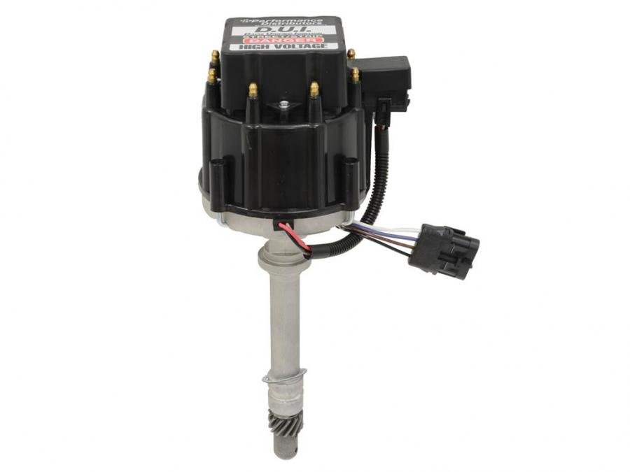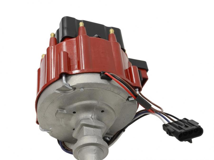 This distributor is available in the one-piece version, with the 7-pin Dyna-Module and 50,000 Volt Street/Strip D.U.I Coil built inside the distributor (1981-1986 Chevy V-8). Both the L-clamp style cape and the screw-down cap style are available.