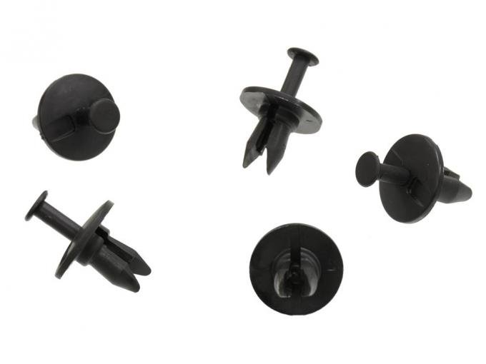 GM fascia black nylon/plastic push type retainer.Head diameter: : 1"Stem length: 3/4"Shoulder length: 3/4"Hole size: 1/2"