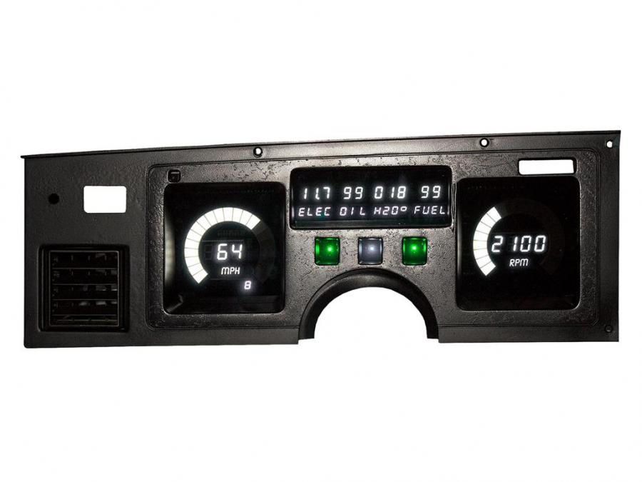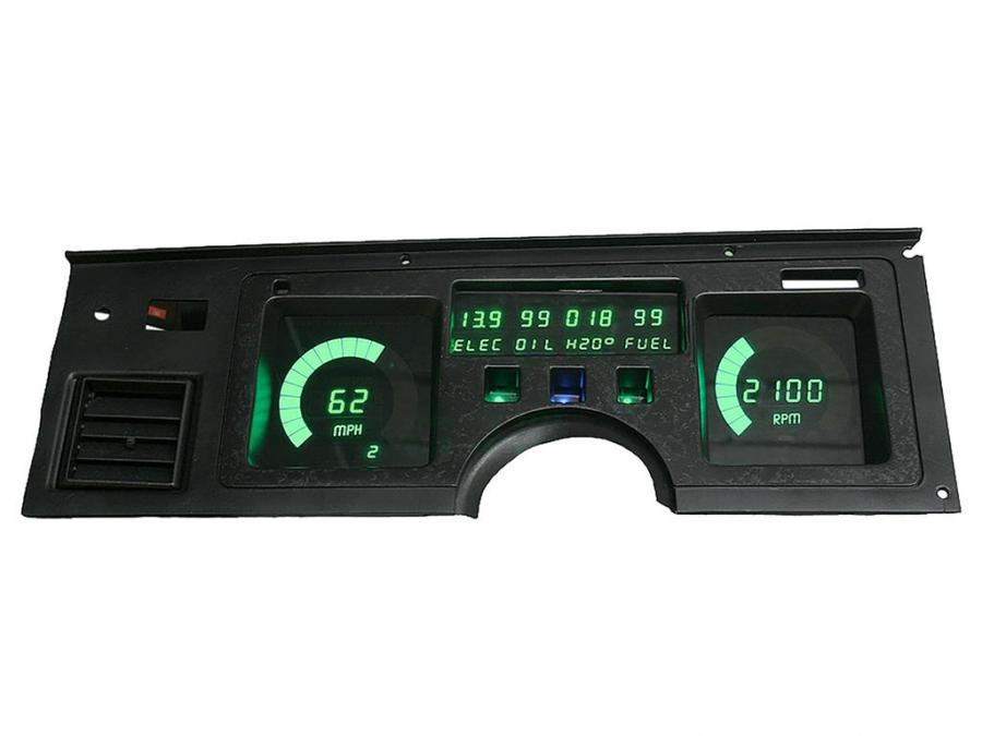 Easy to install, this digital display is made specifically to fit 1984-1989 Corvettes and can be purchased with a red, white, blue or green LED display. The long-lasting, super bright LED's allows for an easy readable dash display. Nine different parameters can be closely followed with these digital automotive gauges; speed, RPM, water, oil pressure, air/fuel mixture, fuel level, voltage, transmission temperature, and oil temperature. Each Intellitronix Direct Replacement Digital Dash comes with a lifetime guarantee and everything you need for installation including a step-by-step manual and tool kit.