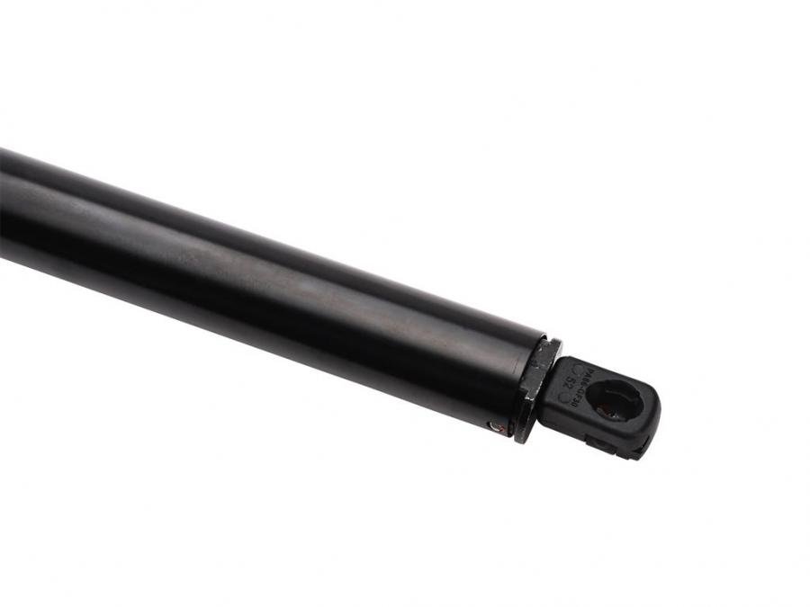 You may have to open the hood further than its original travel to get the new strut put in place on studs. Get the top of the new strut secured to the hood, then carefully open it out to get the bottom lined up/forced on. You may also want to loosen up the hinges. It is no easy task and definitely requires some helpers. Take 2 people to hold the hood (and try to support it with an additional prop/broomstick inside) while it is detached from the existing strut.