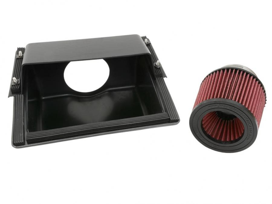 The Vortex Rammer obtains cool, pressurized air from the radiator cavity, drives it through the radiator shroud into the specifically designed scoop and forcesit into the Rammer sealed box. It is then routed into a revolutionary air cleaner that contains an internal velocity stack. The radiator shroud requires a simple cut-out on all installations. Available with a black scoop or clear that houses thefilter. Installation hardware and instructions included; 2 hour installation.