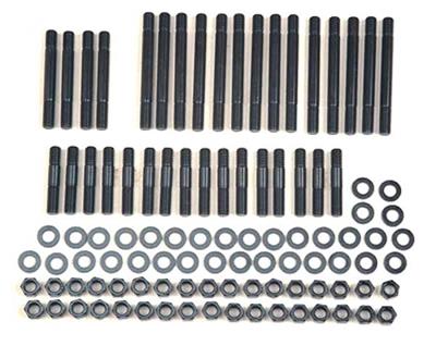Boosting combustion pressure through installing a more aggressive cam profile or a power-adder (blower, turbo, or nitrous) can push factory TTY (Torque To Yield) head bolts beyond their intended loading, causing blown head gaskets. ARP head studs aremanufactured from stronger material (heat treated 8740 rated at 200,000 psi or proprietary ARP 2000 at 220,000 psi) providing extra clamping force. They're hex-broached for easy installation or removal. And they come with hardened, parallel machinedwashers for optimum load distribution.