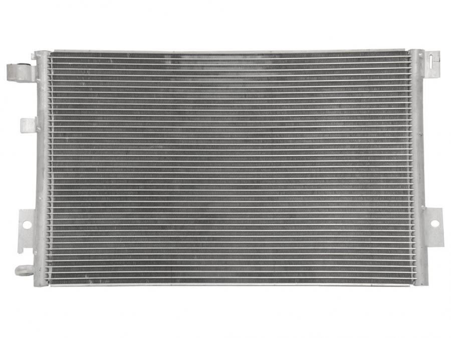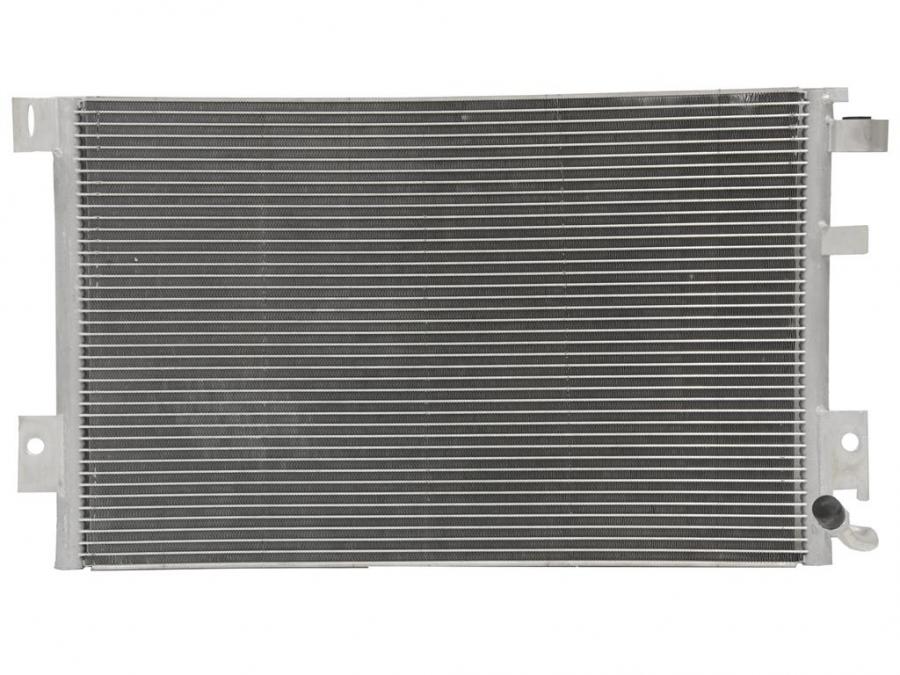 The air conditioning condenser is a radiator positioned between the car's grille and the engine cooling radiator. The refrigerant enters the condenser as a high-pressure vapor, but as it flows through the condensor and cools, it turns back into a cooler high-pressure liquid. The liquid refrigerant then flows to the evaporator inside to the dash where it cools the interior.
