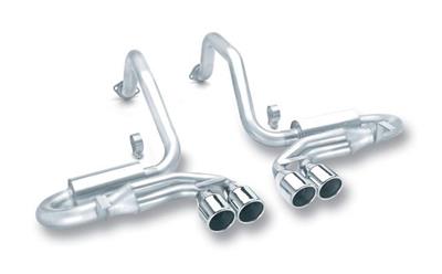 Borla, the premier manufacturer of performance exhaust, introduces its latest rear section Exhaust System, designed specifically for C5 and Z06 platforms. Incredible flow characteristics are combined with an 11 HP boost, plus bold sound and competition looks. Aircraft quality 304 stainless steel construction is finished with polished mufflers and dual 4 inch angle cut rolled tips. Backed by Borla's million-mile warranty. All hardware included. Adds real STING to your C5's sound!
