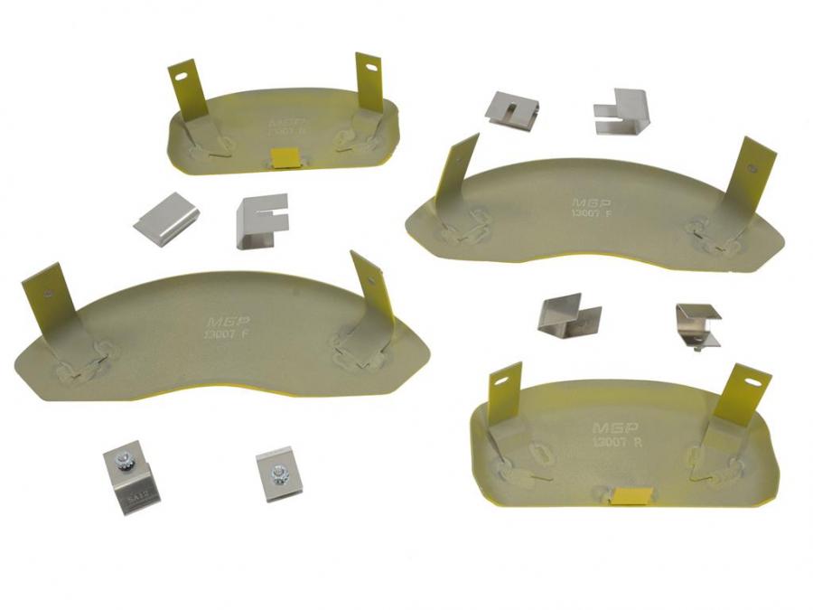 Now you can dress-up your calipers with these Aluminum covers. Black Power coated for long lasting color. Not only do these covers hide the ugly caliper but also reduce brake dust, reduce heat and brake fade. They are secured using a patented fastening system.