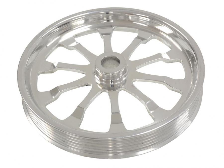 Have you blown out your factory power steering pulley due to increased horsepower?? Fact is, your original pulley was not designed for the increases that even the latest performance bolt-ons can have on your engine. Or maybe you just want a little more shine on the front of your engine. This 6061-T6 Billet Aluminum Power Steering pulley is manufactured in the USA, they include a unique 10 spoke design with a high luster show polish.