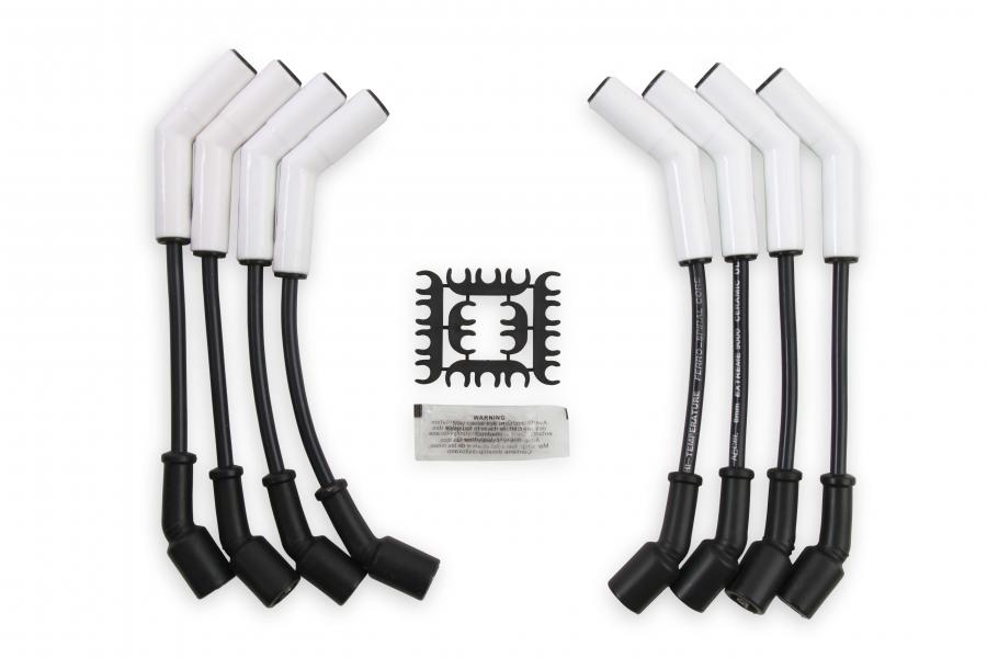 CUSTOM FIT EXTREME 9000 CERAMIC SPARK PLUG WIRE SET; 8MM FERRO-SPIRAL CORE WIRE; BLACK WIRE W/WHITE CERAMIC BOOTS; LS TERMINALS;