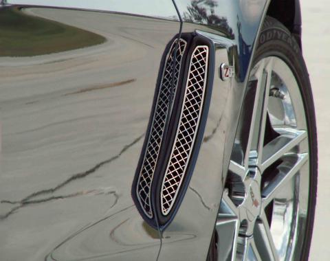 Dress up your Corvette with our Polished Laser Mesh Stainless Steel Side Vent Grilles. This Corvette accessory is designed to fit 2006-2013 Z06 Corvettes, in the side fender vents, and adds a clean stylish look to your…