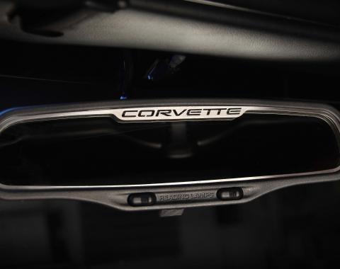 Dress up your Corvette with our Brushed Stainless Steel CORVETTE Style Rear View Mirror Trim. These trim pieces are designed to fit within the outer frame of the auto-dim rearview mirror and add a clean stylish look to your…