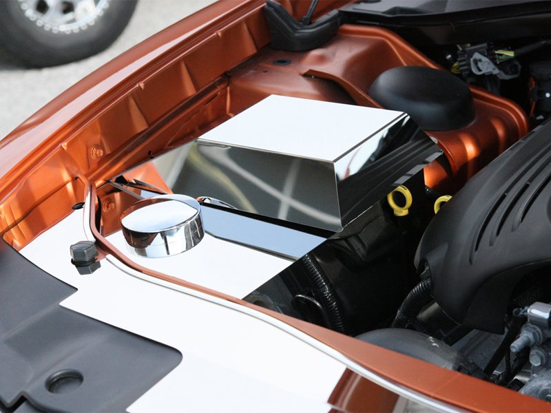 Dress up your Charger or Chrysler 300 with our polished stainless steel Fuse Box/Anti-Lock Brake Cover. These trim pieces are designed to fit over the fuse box and anti-lock brake module and add a clean stylish look to your Charger or 300 engine bay.