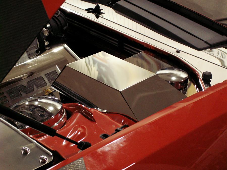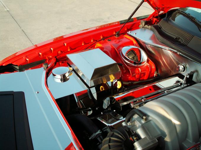 Get the mirror finish look for your engine bay with our polished Challenger Fuse Box Cover for your 08-14 5.7 and SRT 6.1. Each stainless steel engine dress up accessory we create is designed to fit over the stock engine part giving your ride a truly unique, clean, show winning look.
