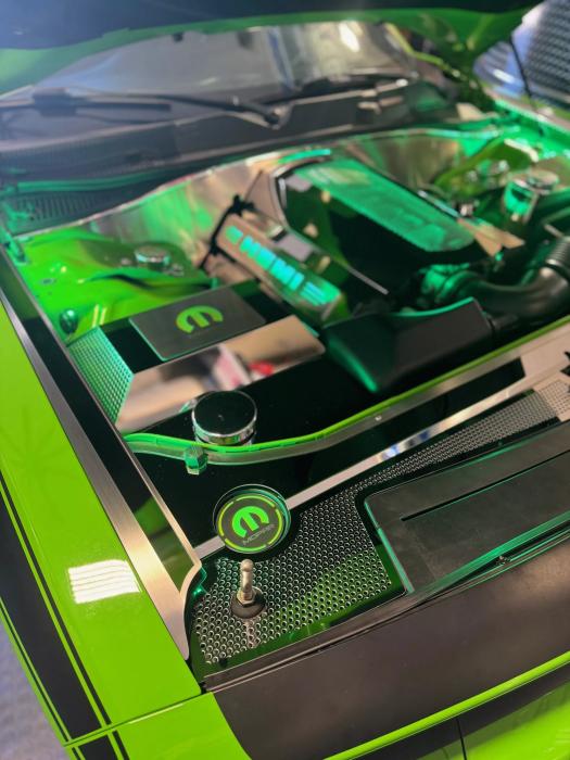 This handcrafted stainless steel masterpiece features a laser-etched MOPAR® logo and the MOPAR 'M' with a sleek vinyl inlay. Add a touch of iconic muscle car style to your engine bay. It's the perfect finishing touch for that custom look you've wanted.