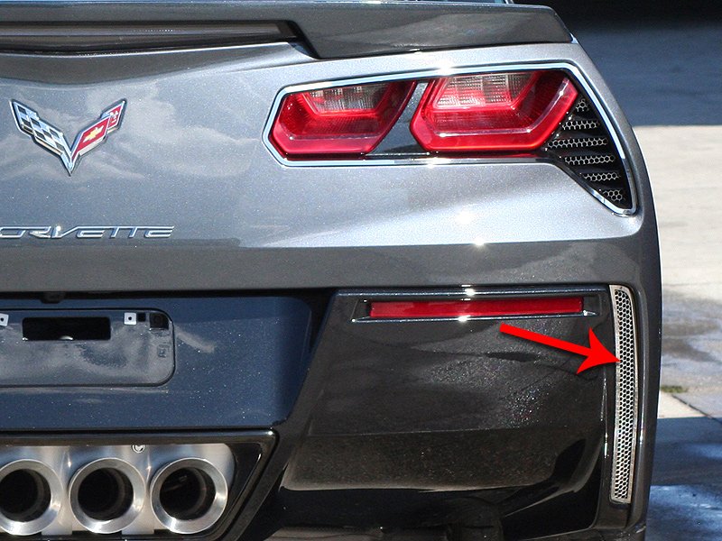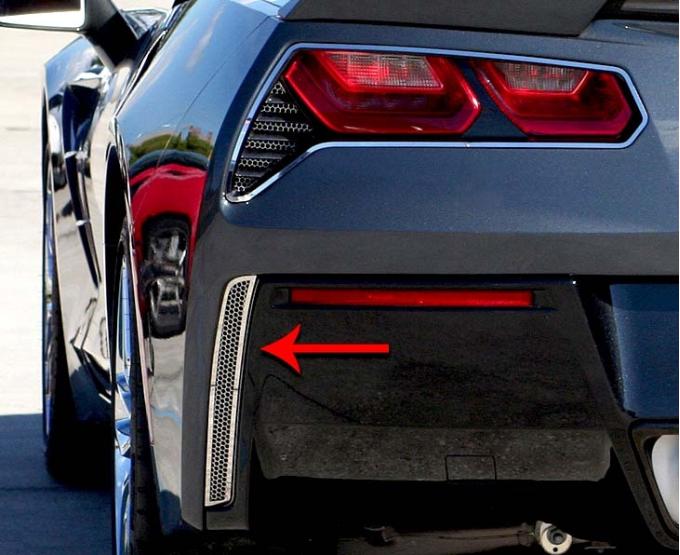 Dress up your C7 Corvette Stingray with our Matrix Series polished aluminum mesh & brushed stainless steel Outer Trim Rear Valance Vent Grilles. These grilles are designed to fit all 2014+ Corvettes over the rear valance vents and add a clean stylish look to your Corvette exterior. Compliments our Matrix Series Alumi-Steel Tail Light Grilles (2pc) - 052006.