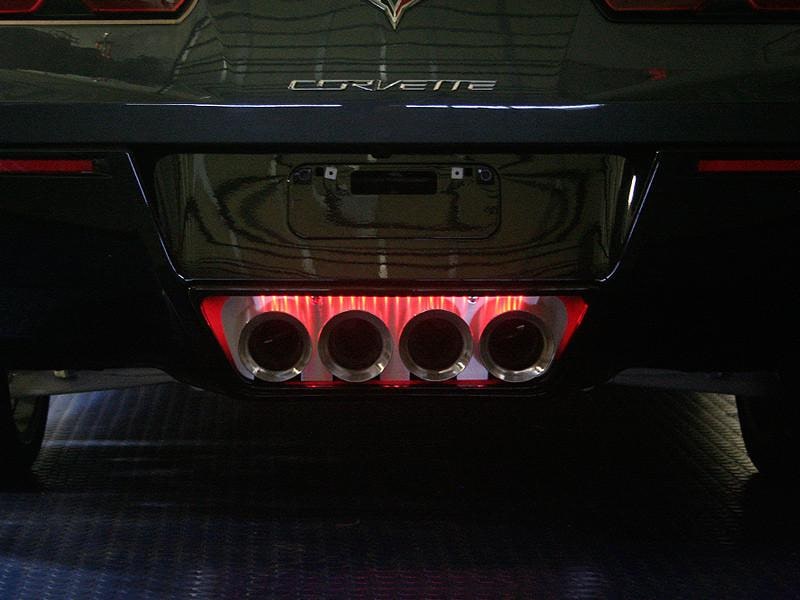 Finish the look of your 2014-2019 C7/Z51 Stingray, Z06, or 2019 ZR1 Corvette with our Brushed Stainless Steel, Illuminated Exhaust Filler Panel for NPP Dual-Mode exhaust systems. This panel is designed to fit around the exhaust tips for a finished look the way it should have come from Chevy.