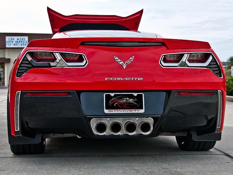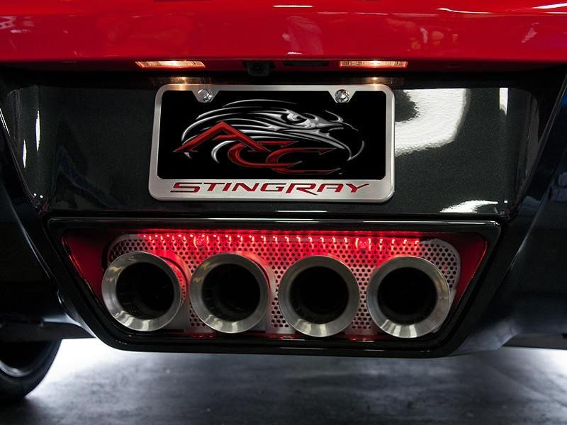 Dress up your 2014-2019 C7/Z51 Stingray, Z06, and 2019 ZR1 Corvettes with our Brushed/ Perforated - Stainless Steel Exhaust Filler Panel with Red LED Lighting for optional NPP Dual-Mode exhaust system. These trim pieces are designed to fit all 2014+ Corvettes around the stock exhaust tips and add a clean stylish look to your Corvette exterior.
