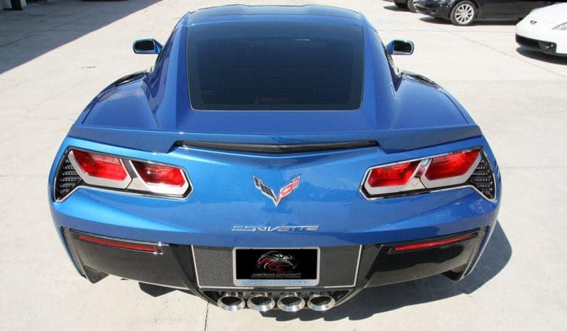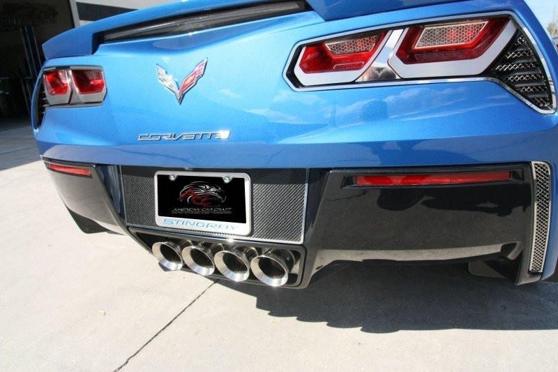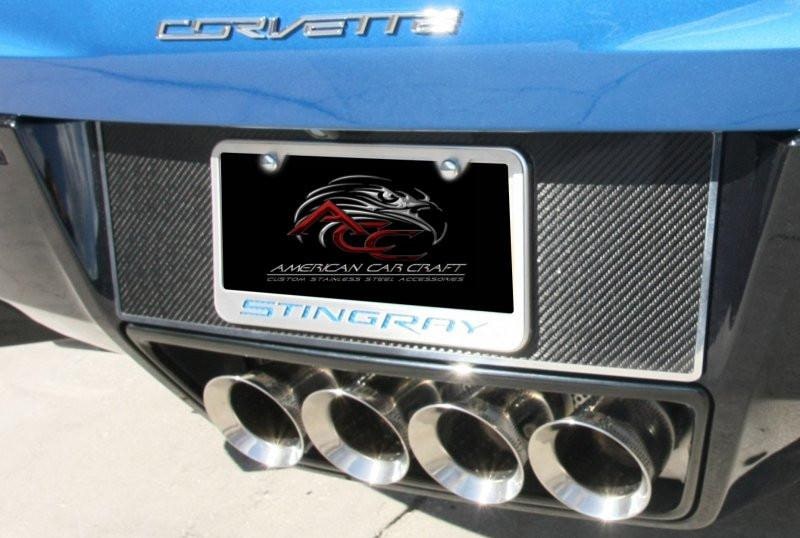 Dress up your C7 Corvette Stingray with our Carbon Fiber Tag Back With Stainless Trim. These tag backs are designed to fit all 2014+ Corvettes over the rear panel around your license plate and will provide a clean stylish look to your Corvette's exterior.