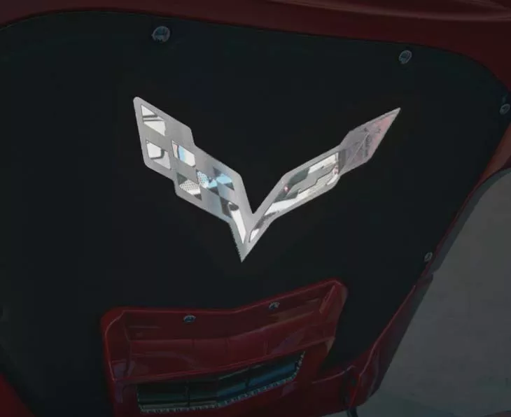 Dress up your 2014-2019 C7/Z51 Corvette with our Polished/Brushed Stainless Steel Hood Panel Corvette Flags Badge. This trim piece is designed to fit on the factory hood pad liner and add an amazing accent piece to your Corvette's engine bay. Features a multi-textural combination of brushed and polished stainless steel making up the Corvette Flags for a custom look!