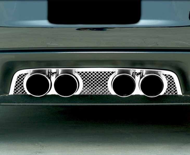 American Car Craft 2005-2013 C6 Corvette - Laser Mesh Exhaust Filler Panel, NPP Dual-Mode/Bi-Mode, Stainless Steel 042006