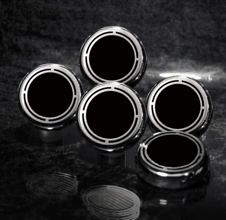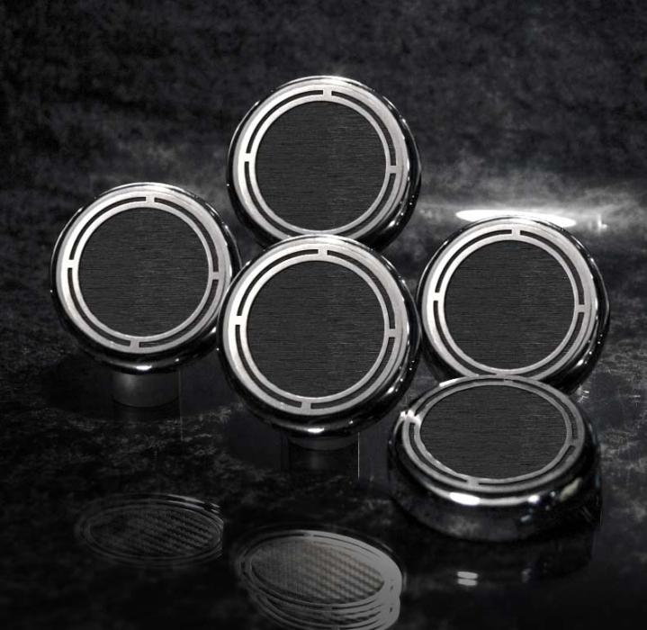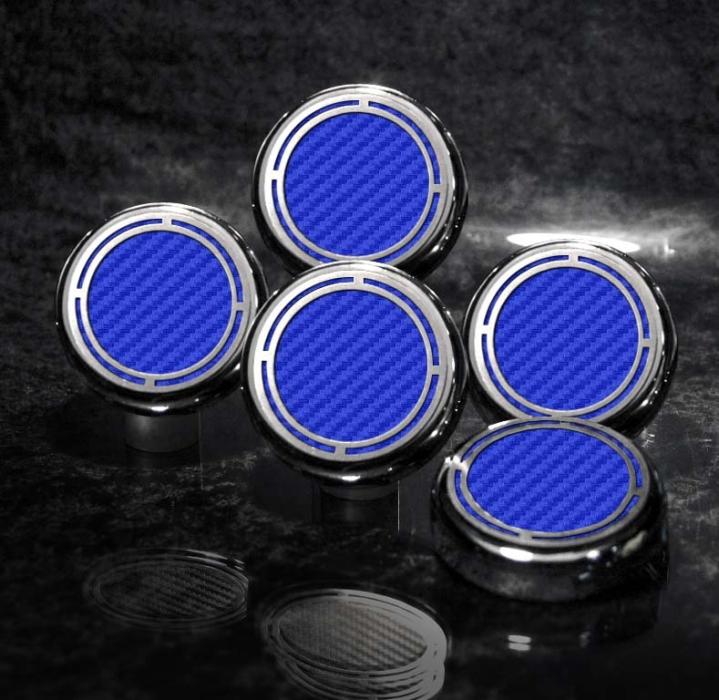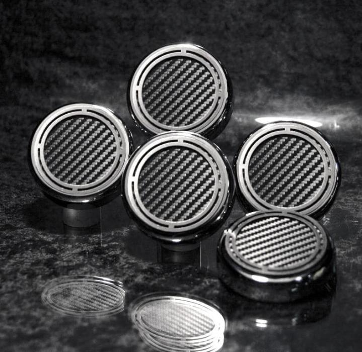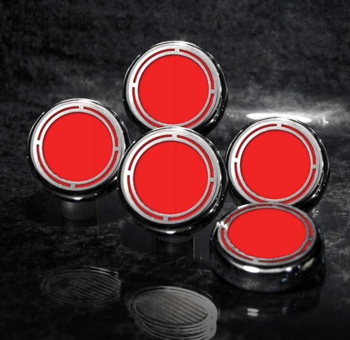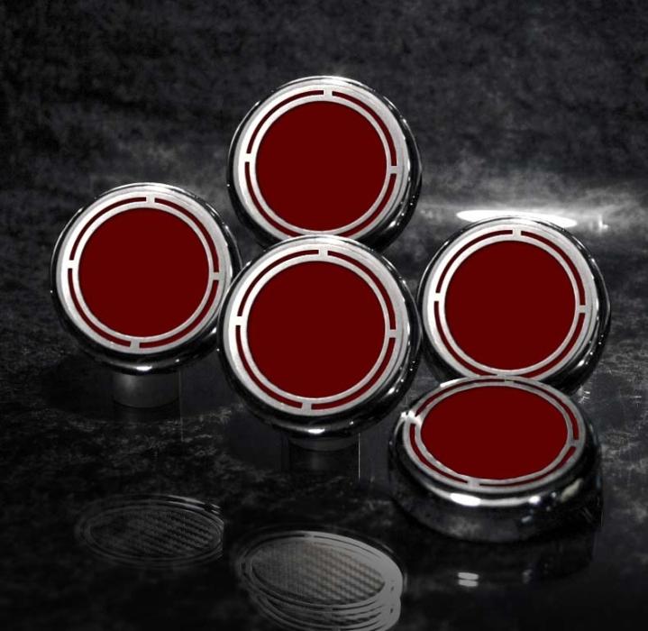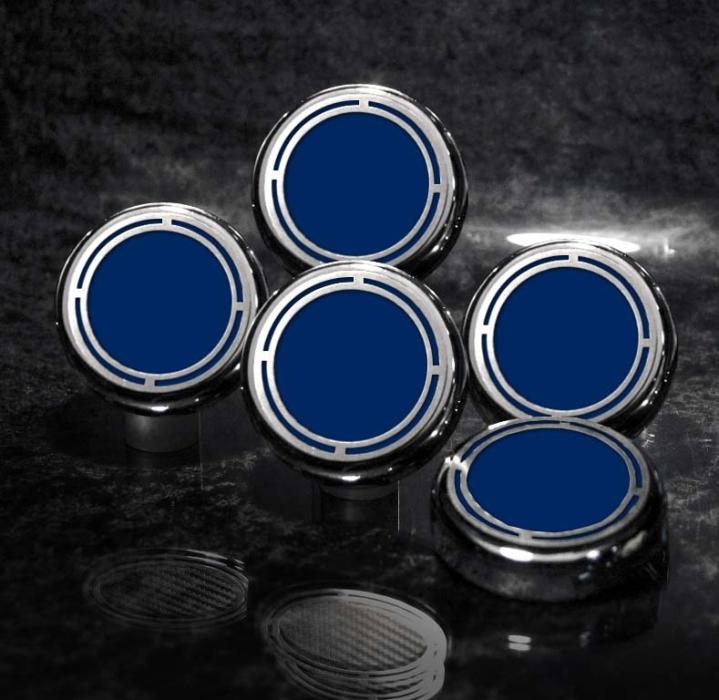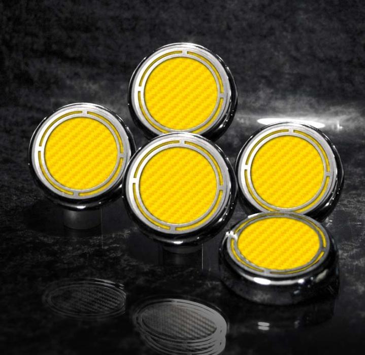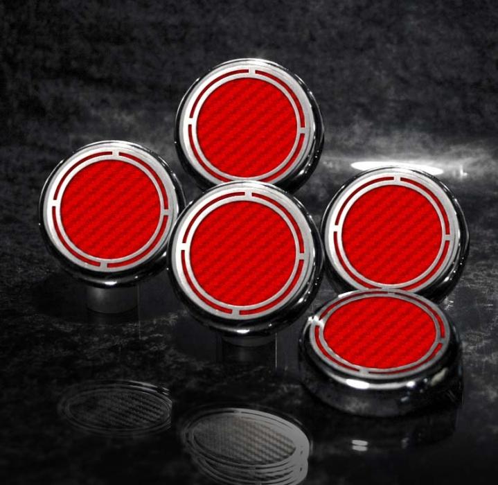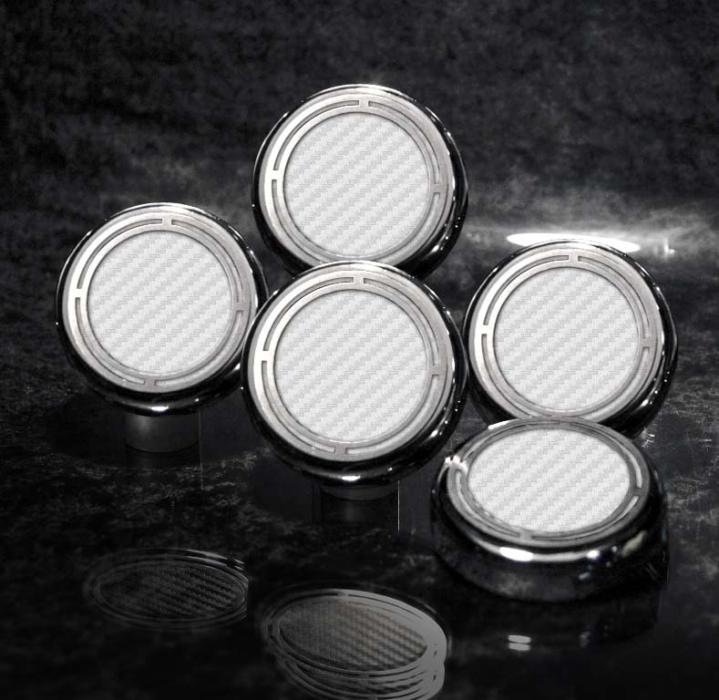 Dress up your Corvette Engine Bay with our Colorful Vinyl Inlay 5-Piece Engine Fluid Cap Covers. These Chrome Caps feature your choice of vinyl carbon fiber or a solid vinyl color for the tops, which are finished with brushed stainless steel trim. Easily installs over your factory fluid caps. This set includes covers for your Oil, Water, Brake, Power Steering and Windshield Washer fluid, factory caps. Our caps are made with a triple chrome-plated steel body with a stainless steel cap plate.