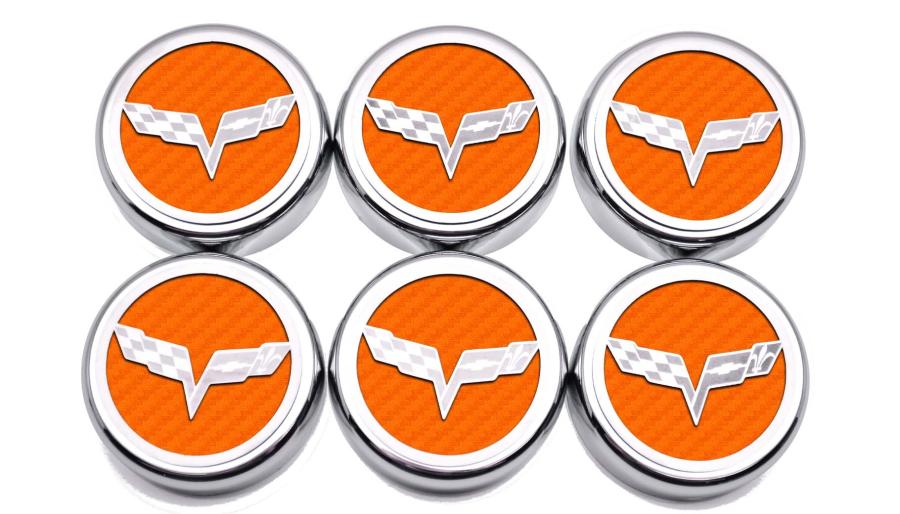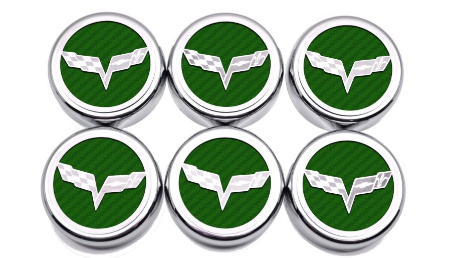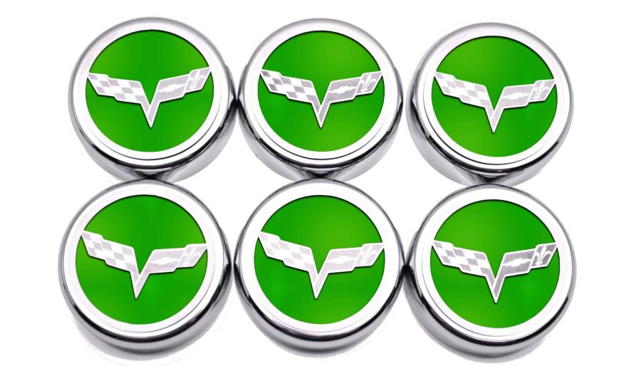 American Car Craft 2005-2013 C6 Corvette - Crossed Flag Fluid Cap Covers 6Pc Manual Transmission, Choose Color 043083