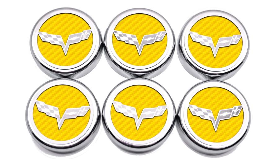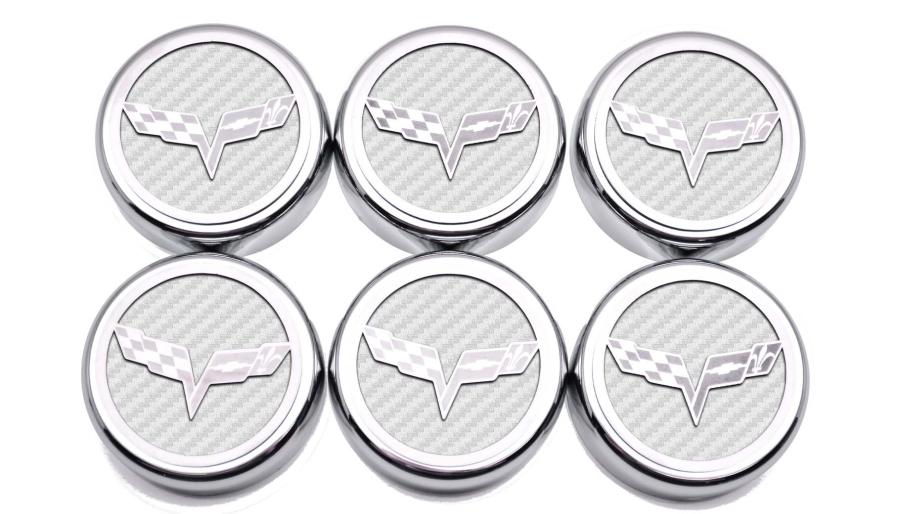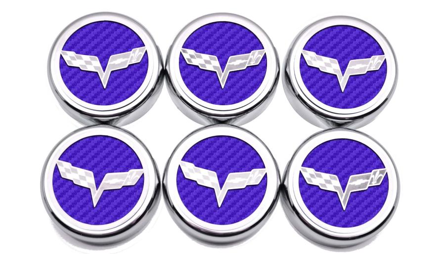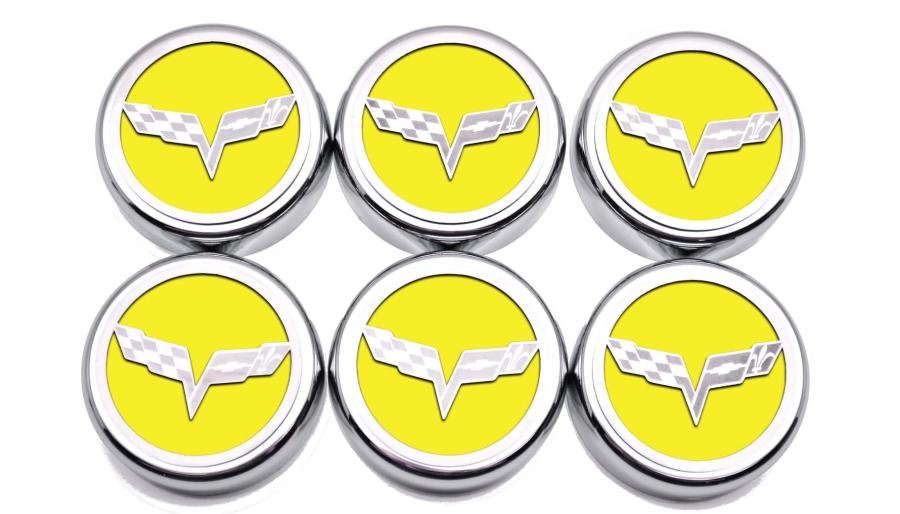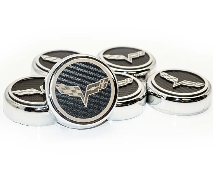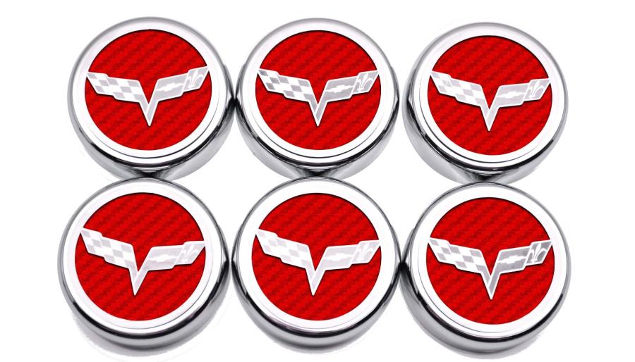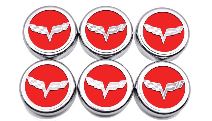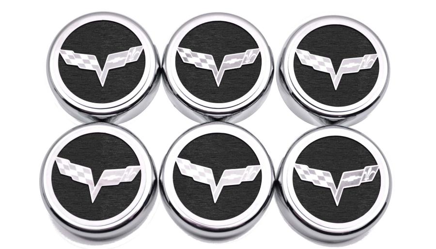Style your C6 Corvette's engine bay with this extremely classy (6) Piece Crossed Flag Fluid Cap Cover Set. These trim pieces are designed to fit all 2005-2013 Corvettes over the stock engine caps and tie your engine bay dress-up project together. Show the judges at the next car show that you leave no stone unturned.