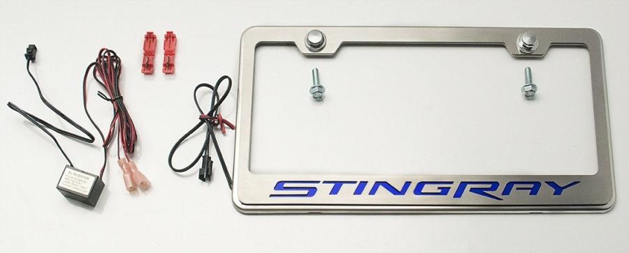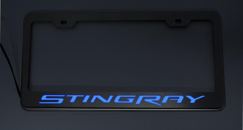 Made with brushed stainless steel this high-quality handcrafted frame features your choice of colored vinyl "STINGRAY" lettering or your choice of colored LED Illumination. Choose vinyl or LED color above before ordering.