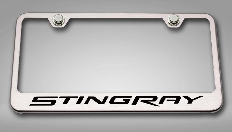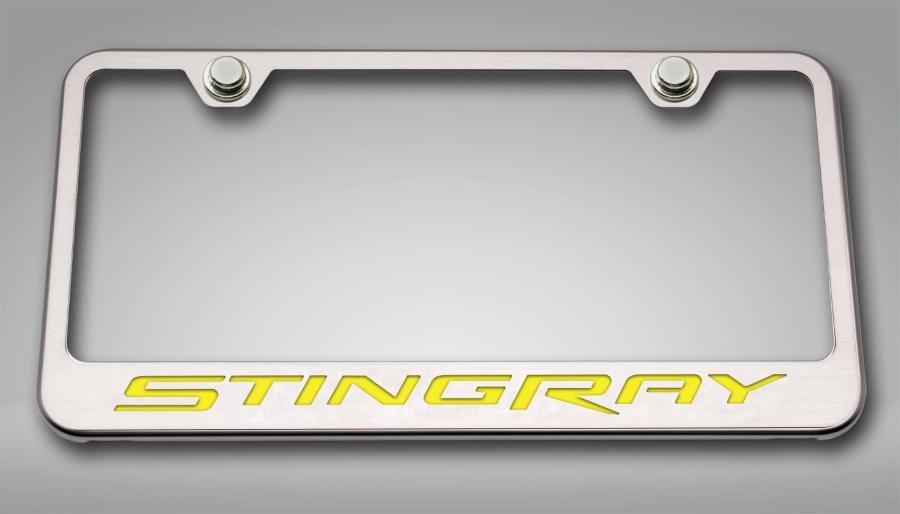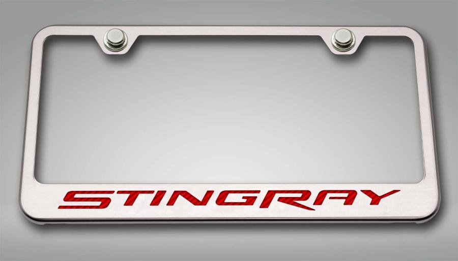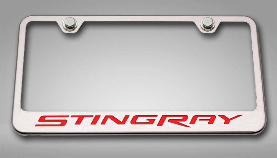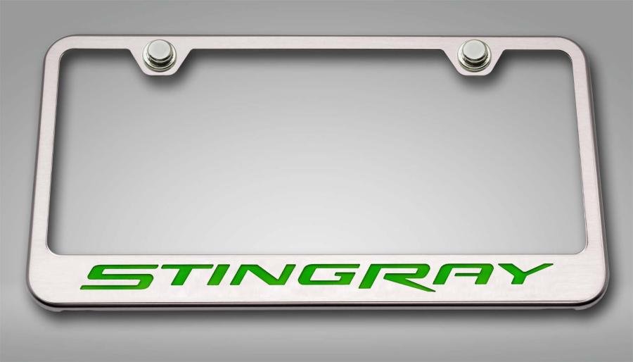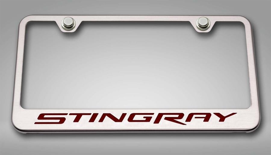 Your C7 Vette is going to look even better when you add our high quality, stainless steel Custom Corvette Stingray License Plate Frame with "Stingray" Lettering. Laser cut and hand crafted, this stainless steel frame comes with your choice of color for the vinyl inlay lettering. With lettering styled after the 2014-2019 Corvette, this is a tag frame that's sure to turn heads.