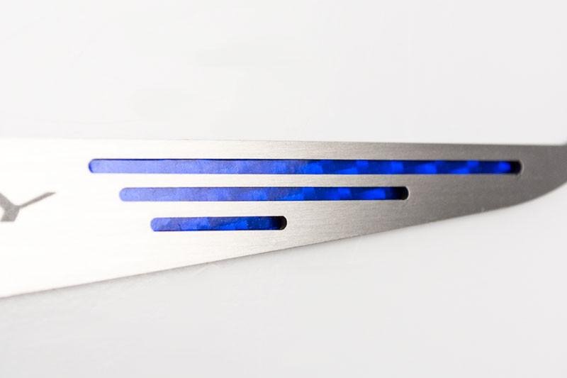 Our product line specialty extends from the interior to the exterior of your ride and into the engine bay. We also create state of the art vinyl decals and can create one of a kind custom etched windows and laser etched stainless steel products.