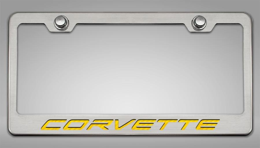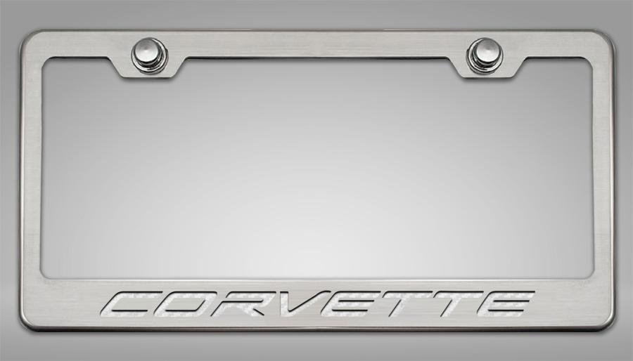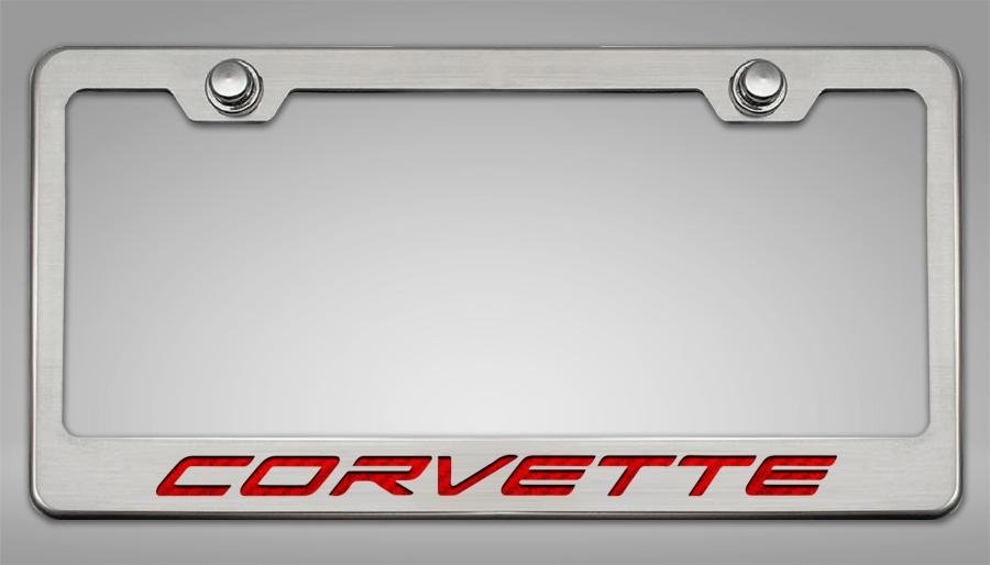 Dress up your C8 Corvette with our custom C8 CORVETTE Custom License Plate Frame made with Polished and Brushed Stainless Steel. Features your choice of vinyl carbon fiber color inlay for CORVETTE letters in the C8 style. Your C8 Corvette deserves nothing but the best quality.
