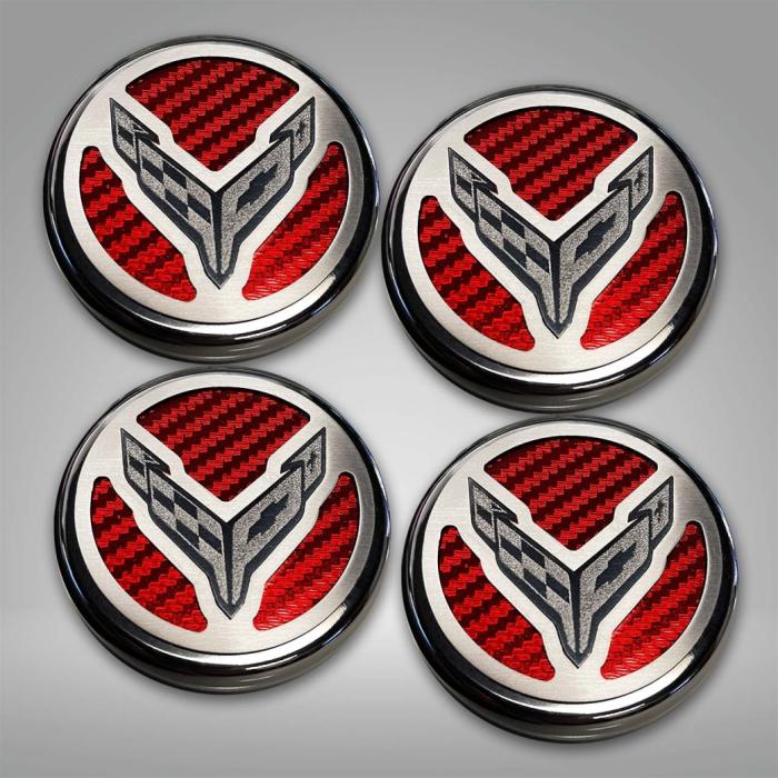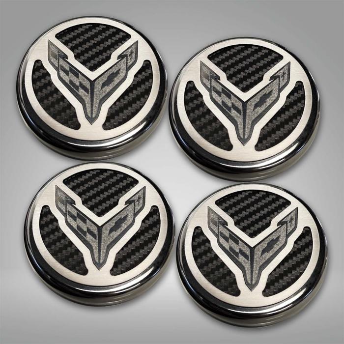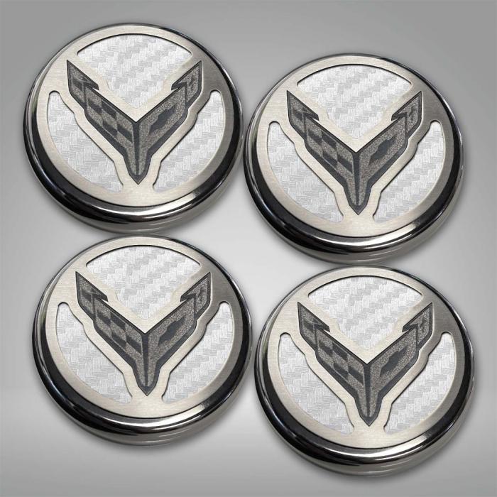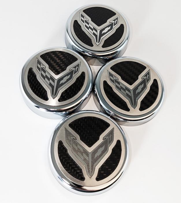 American Car Craft’s C8 Corvette Coupe Cap Cover Set will turn your engine bay into a work of art! These Cap Covers feature a stainless steel etched Cross Flag logo over with Real Carbon Fiber Inserts, a polished base, and a brushed top plate. These finely detailed and hand-crafted cap covers will elevate your engine bay to a show-stopping style. A great way to create a custom look and grab the spotlight. Easily installs over your factory fluid caps. This set includes covers for your Coolant, Washer, Oil and Brake Fluid Caps. All ACC Corvette accessories are laser-cut for a precision fit and hand-crafted in the USA!