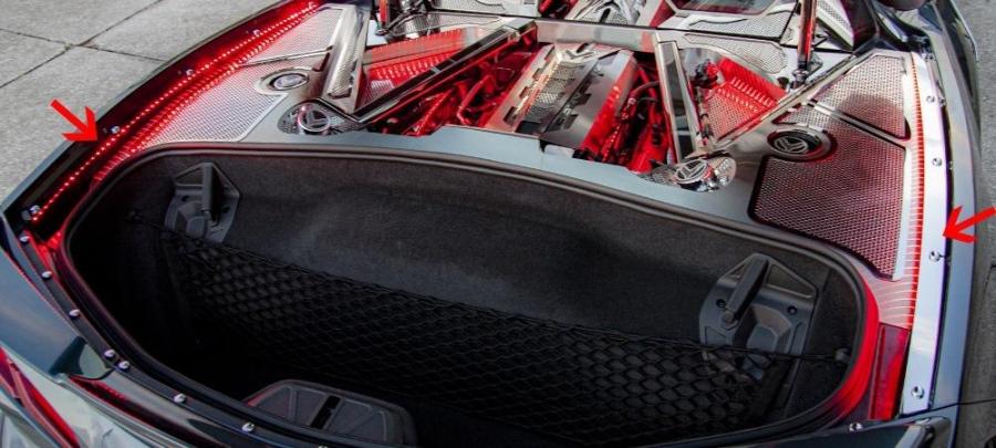 The best way to capture the attention of Judges and spectators alike is with LED illumination. Amplify the style of your mid-engine Corvette engine bay with these Polished Stainless Steel C8 Corvette Coupe Rear Engine Compartment Fender Caps with your choice of LED color illumination or our plain No LED option. Installation of this part is very simple - remove the factory screws from the area the item is being placed, set part into place, and then replaced screws using factory holes. Order now and be ready for showtime.
