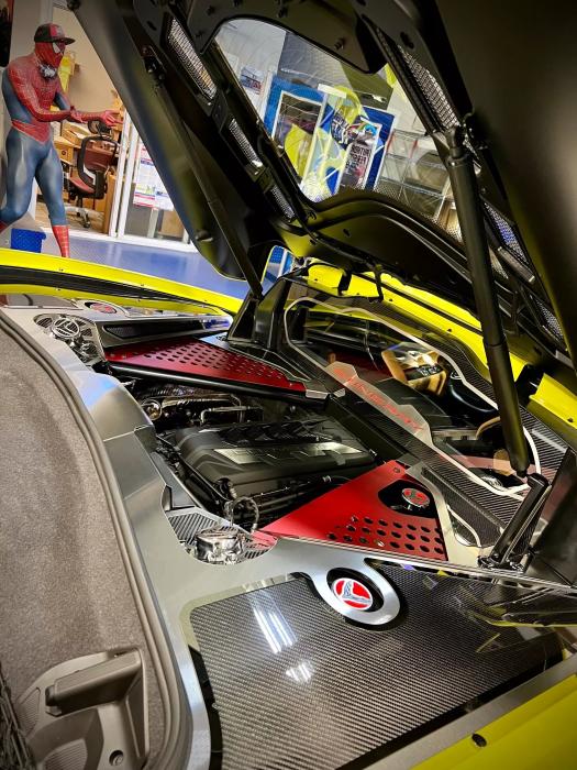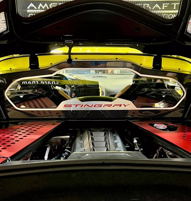 Our product line specialty extends from the interior to the exterior of your ride and into the engine bay. We also create state of the art vinyl decals and can create one of a kind custom etched windows and laser etched stainless steel products.