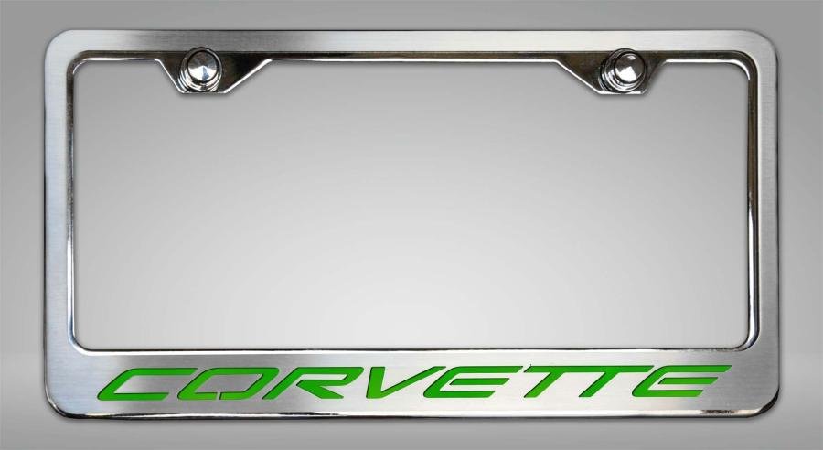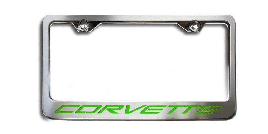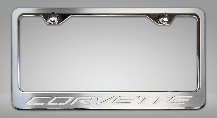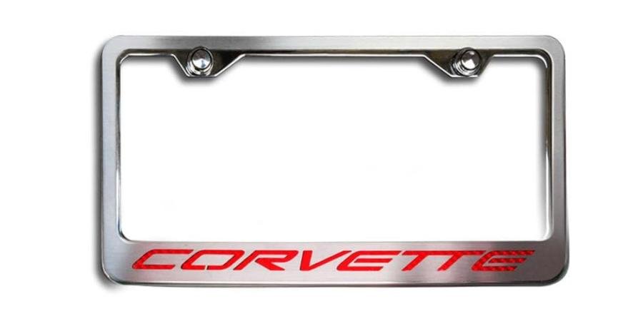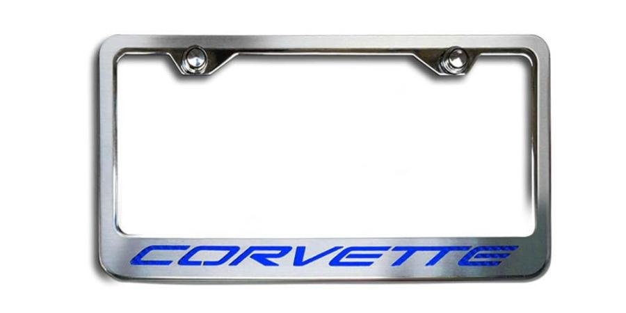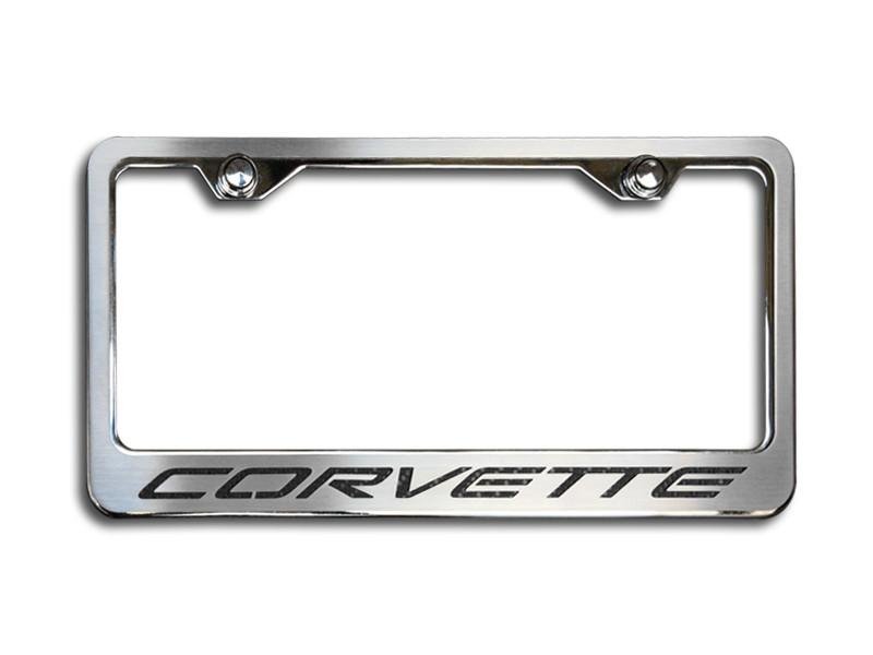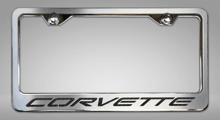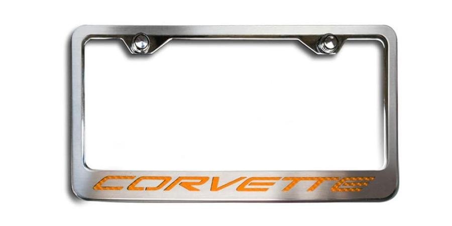 Dress up your C5 Corvette with our custom C5 CORVETTE Custom License Plate Frame made with Polished and Brushed Stainless Steel. Features your choice of vinyl carbon fiber color inlay for CORVETTE letters in the C5 style. Your C5 Corvette deserves nothing but the best quality.