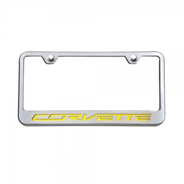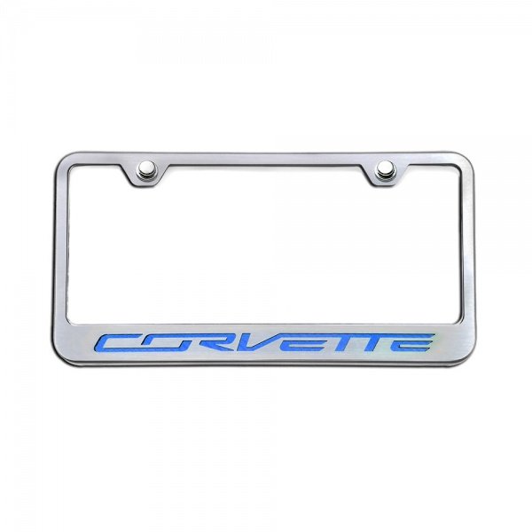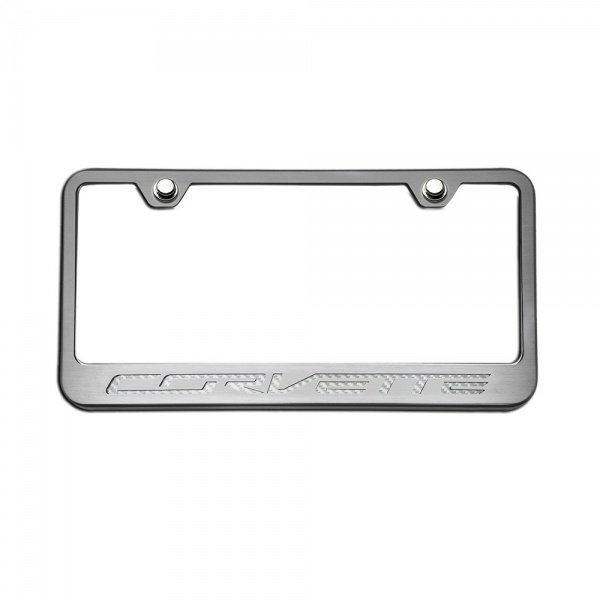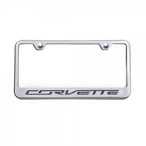 American Car Craft Rear Tag Frame, Black, With Brushed Stainless "Corvette" Lettering, Colored| 052083 Corvette Stingray 2014-2017