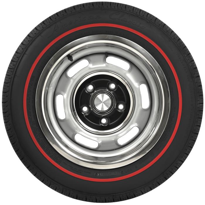 This product features a genuine redline sidewall style, sometimes known as a red stripe, due to the thin 3/8-inch strip rubber. This means that the red rubber is added directly to the tire sidewall during initial construction of the carcass, resulting in a truly integrated, high-quality product after vulcanization. Redline tires hit the American automobile market in 1964 with the introduction of the Pontiac GTO and remained a popular muscle car tire until around 1970. Dual redline tires (two red stripes) were an option on Ford Mustangs, and are now reproduced in original bias ply, bias look radial as well as radial construction. Choose the redline that best fits your application.
