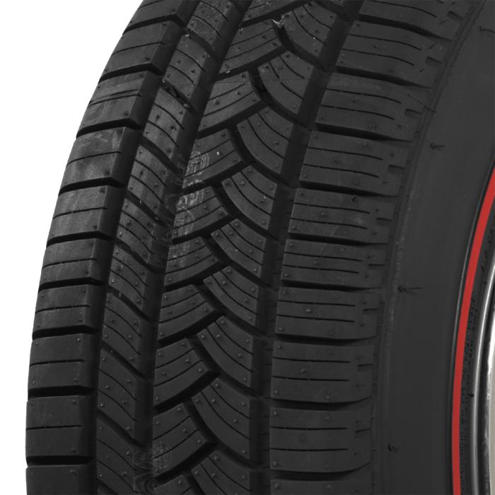 Our line of American Classic radial tires includes P-metric radials (such as 235/75R15) and our famous "bias look radial" (such as 670R15). We offer American Classic radial tires in wide whitewall, narrow whitewall, and black sidewall in select sizes, developed specifically for 1940's, 1950's and 1960's classic cars. These tires feature a classic tread design and a beautiful sidewall that's built into the tire from day one of production.