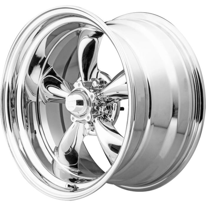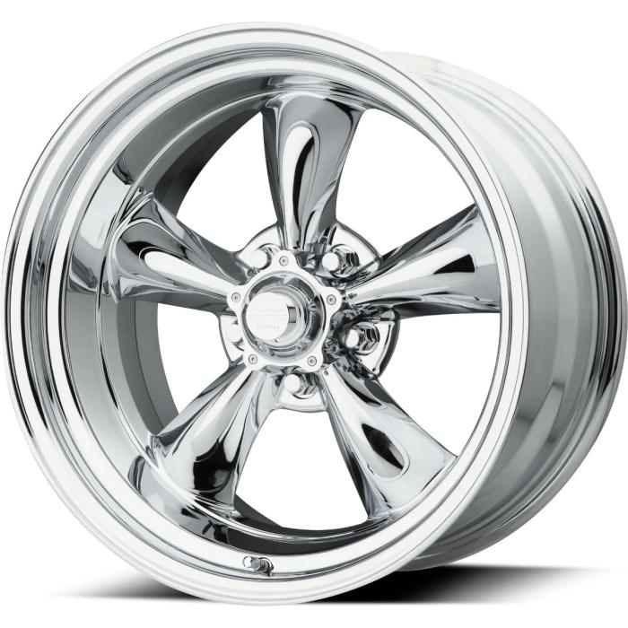 This 15x8 American Racing Torq-Thrust II wheel features a 5 on 5 bolt pattern, for use on Chevrolet and GMC trucks, as well as select GM full size cars from the '60s through the '80s. This VN615 Torq-Thrust II wheel features a Chrome finish that provides a long-lasting bright show car finish. It features 3.79 inches of backspacing, which allows fitment on many classic truck applications with drum brakes or aftermarket disc brakes, and can be used on the front or rear of most vehicles. Torq-Thrust wheels feature a one-piece cast aluminum construction, and features a conical lug nut seat, meaning you can use common acorn style lug nuts.