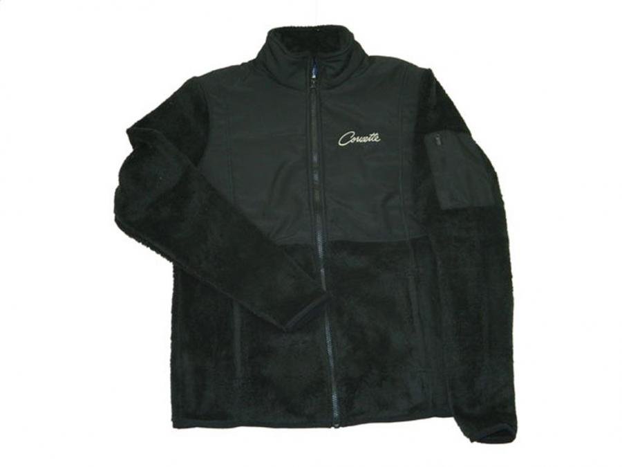 Jacket Womens Black Furry Fleece With Corvette Script