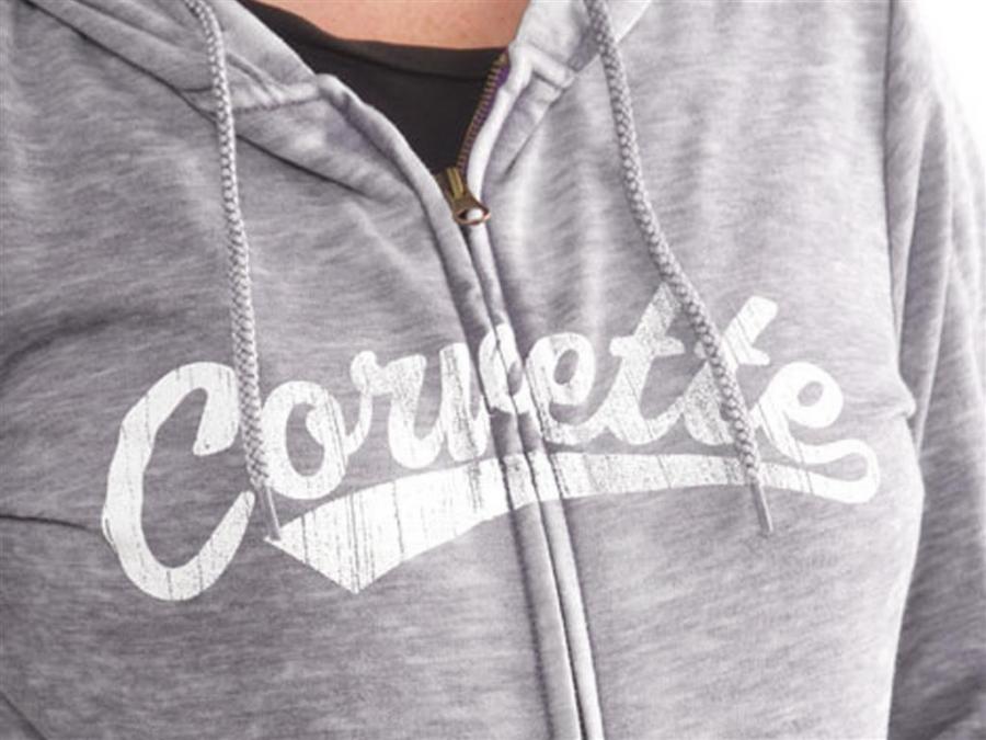Gear For Sports Coed super-soft lightweight fleece hoodie features an all-over burnout treatment and a distressed Corvette screen print across the full-zip front. 55/45 cotton-poly blend.