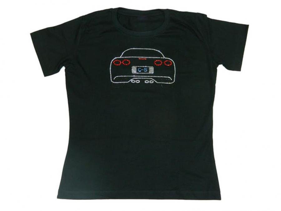 T-Shirt - Womens Black With C5 Rear View In Rhinestone