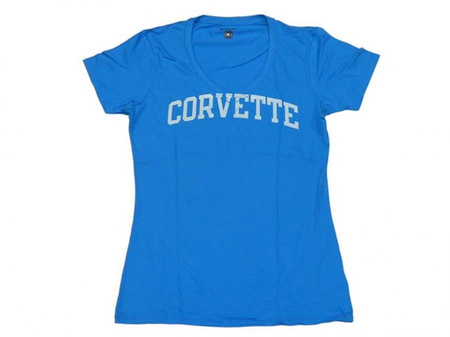 T-Shirt Womens Short Sleeve Blue With Corvette Script