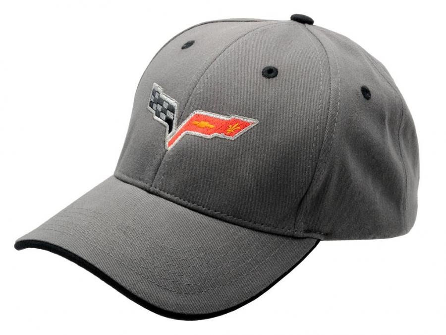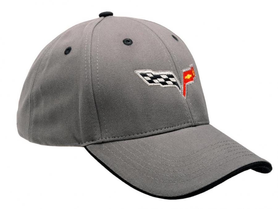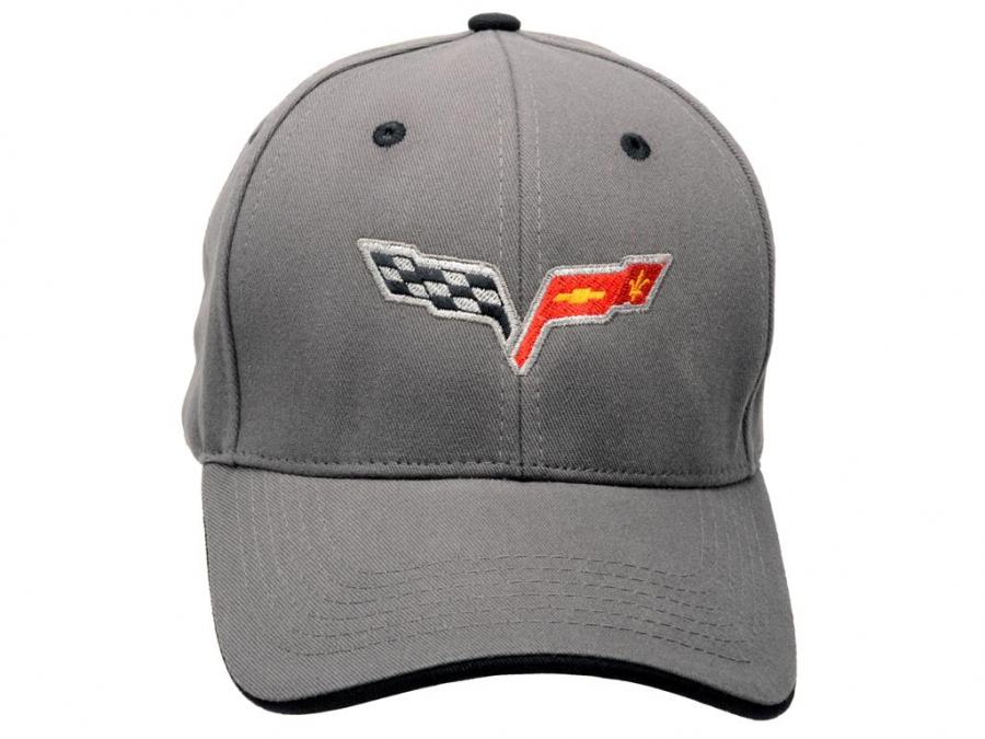Classic 100% cotton Gray/Black. twill cap with contrasting black under the bill. Semi-structured crown. Embroidered with the Corvette C6 emblem. Adjustable Velcro® closure. Imported.