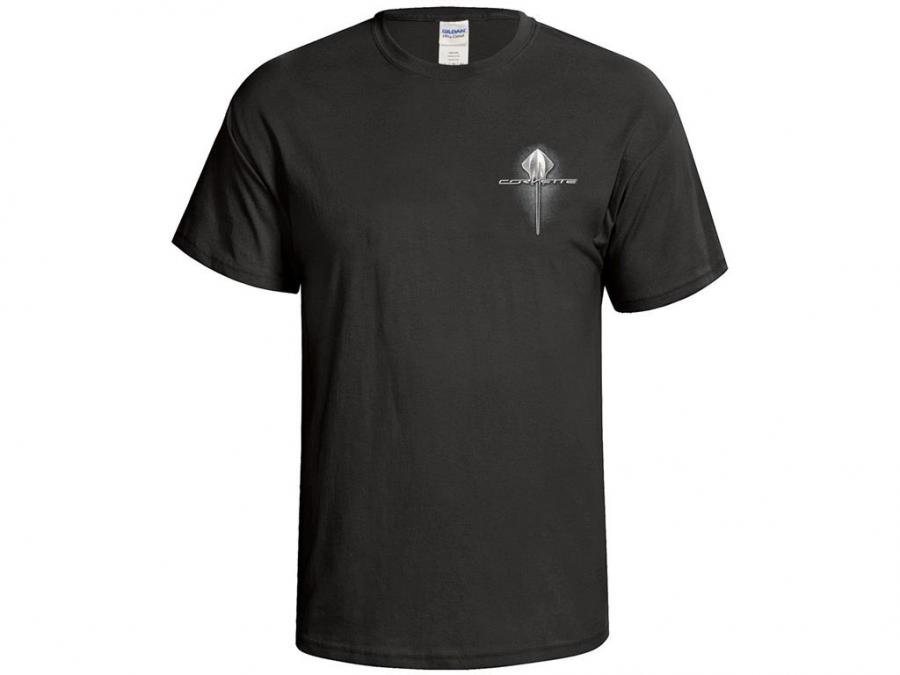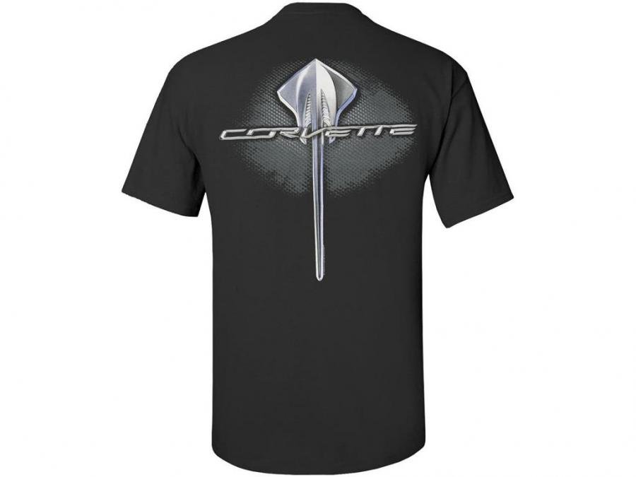 This striking shirt is heavyweight 100% cotton preshrunk. This T-shirt features the Stingray emblem with Corvette script on left chest, and full back.
