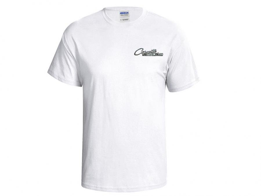 Embnlem printed on front left chest. '63 Split Window and '67 427 Roadster printed on the back. 100% cotton pre-shrunk white Fruit of the Loom T-Shirt.