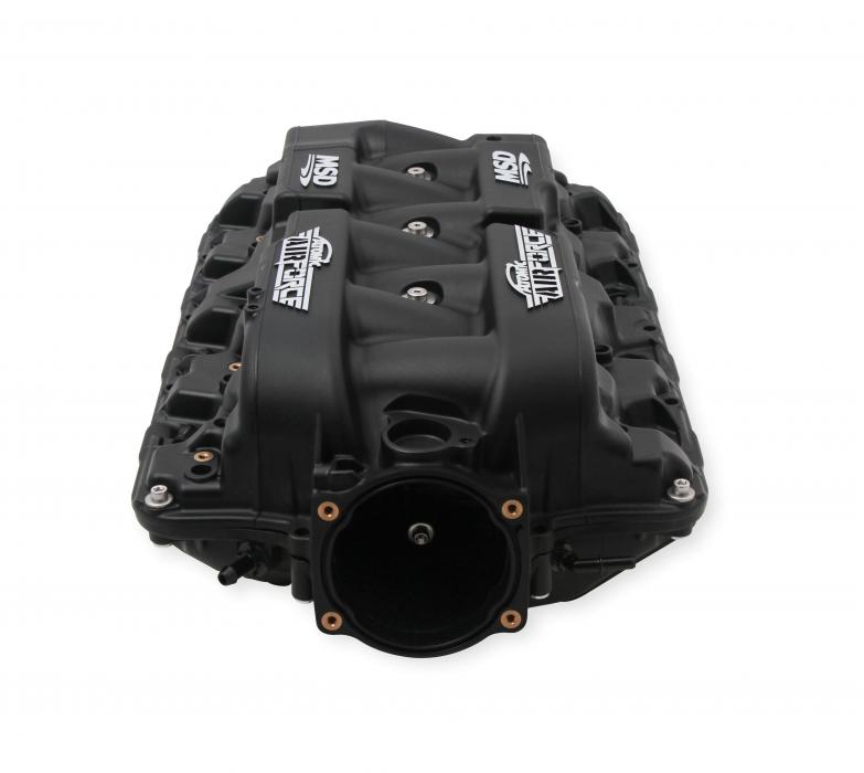 When you're serious about power for your LS or new LT1 engine, call in the AirForce! The all-new MSD Atomic AirForce intake manifold delivers improved airflow and distribution to improve the performance of stock and modified engines. The unique bell-mouthed runner entrances maximize airflow and minimize shrouding - all while optimizing the available plenum volume for an unobstructed flow path over opposing runners. The polymer molded 2-piece design allows for easy access to the runners for porting. Atomic AirForce accepts an OEM or 103mm throttle body as well as stock or aftermarket fuel rails including MSD's Atomic LS EFI system. The intake bolts on and is supplied with new gaskets and hardware for a direct bolt-on package.