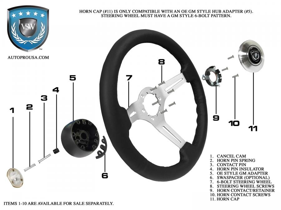 VSW OE Series Horn Cap pairs perfectly with OE Style Wood Option Hub Adapter (SWA Adapter) and OE Style Contact Kit.