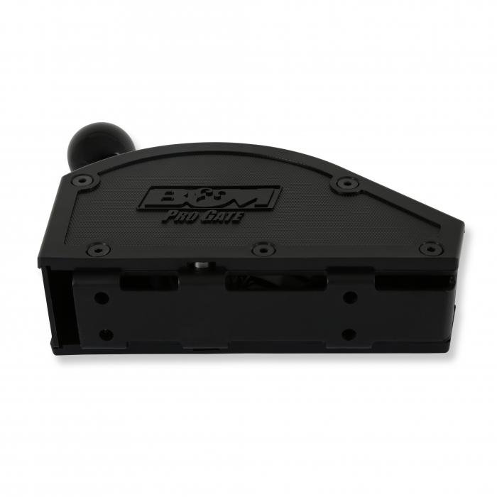 B&M Pro Gate shifters are externally gated race shifters. The compact and lightweight design features a 10-gauge black oxide-coated 304 stainless steel base with a heavy-duty 303 stainless steel shift pin for longevity and bullet-proof performance. This model is ideal for use on 1966+ Chrysler, 1972+ AMC, and Ford C4, C5, and C6 transmissions. It will also work with Ford AOD, AODE, 4R70W, E40D, and 4R100s but requires the use of selector lever kits (sold separately). The 1018 steel shift stick includes a black B&M logo shift knob for shifting duties while the external gate plate is constructed from black oxide-coated 11-gauge 304 stainless steel for durability. Other features include thick injection-molded nylon side covers featuring a knurled texture with the B&M Pro Gate logo on both sides. The covers are removable for access to the virtually maintenance-free shifter sub-assembly and will not gum up with dirt affecting shift performance, which is ideal for Off-Road racing. The rear-exit cable design includes a black 5-ft Super Duty race shifter cable along with a cable bracket, shift lever, and all necessary hardware for a straightforward installation.